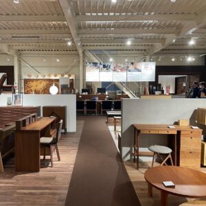 私たち佐賀県佐賀市にある家具メーカー「レグナテック」の直営ショールームにて