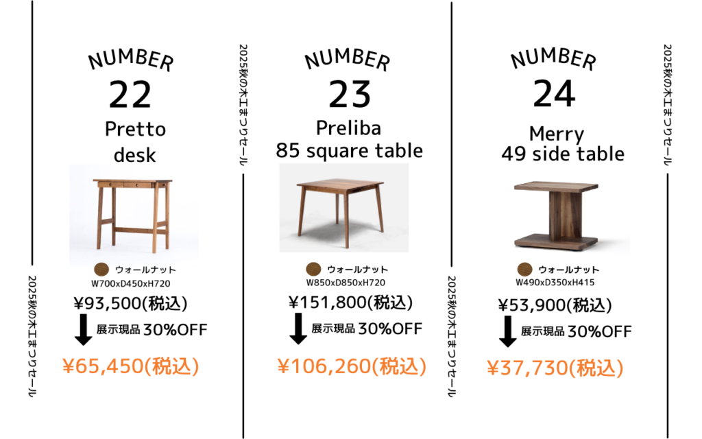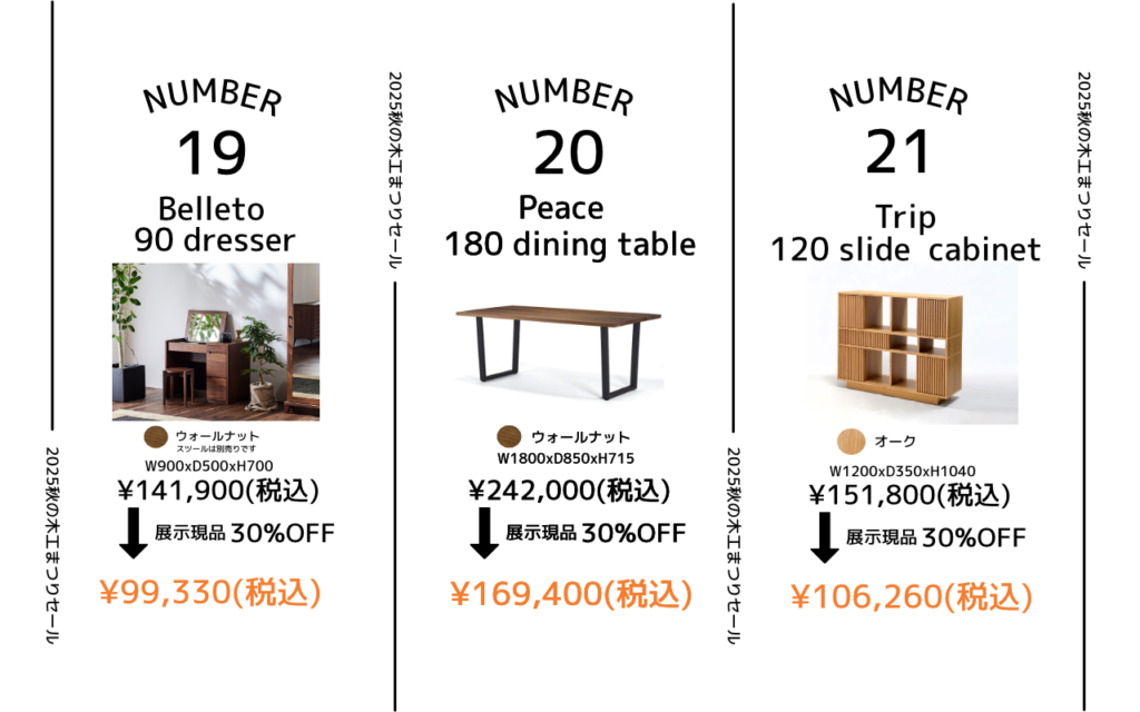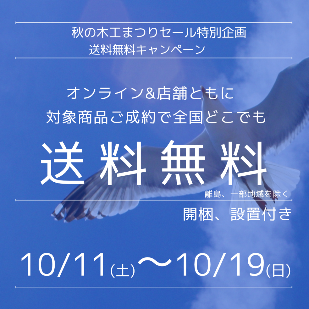 年に一度の特別オファー 秋の木工まつりセール開催!10/11(土)・12(日)・13(月・祝)