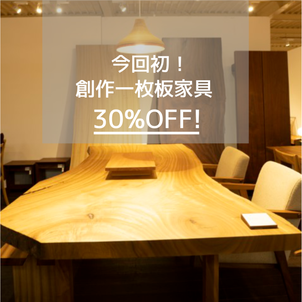 創作一枚板家具30%OFF(今回初!)