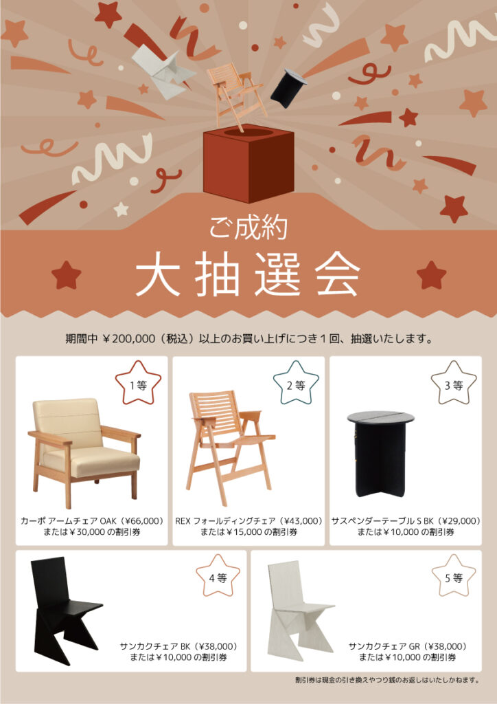 家具、割引券が当たるご成約限定くじ