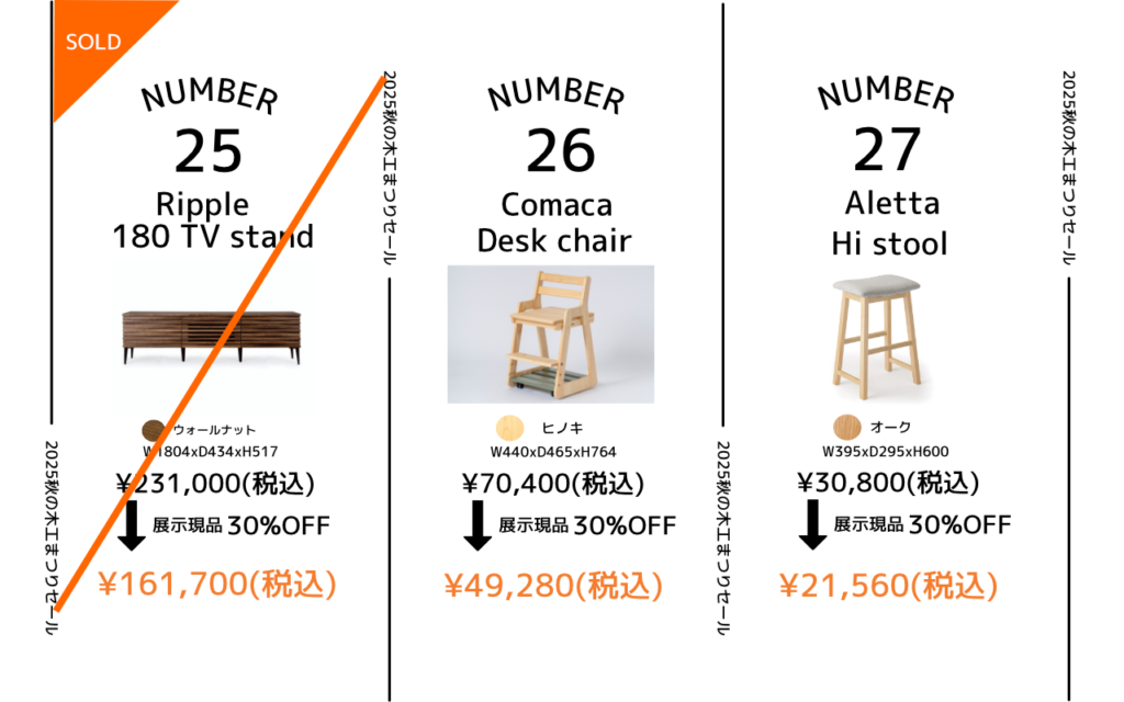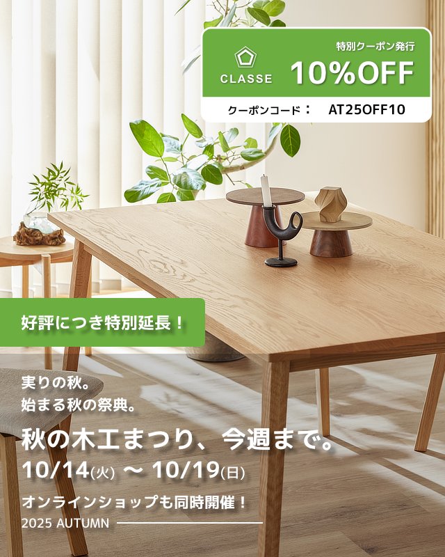 秋の木工まつりセール 第二弾開催決定! 10/14(火)〜10/19(日)まで