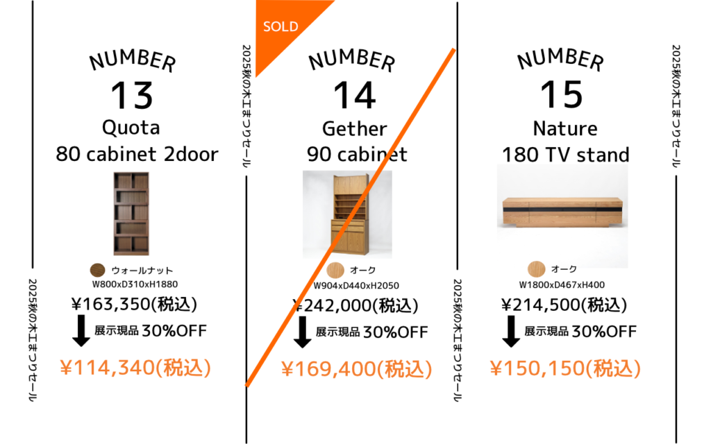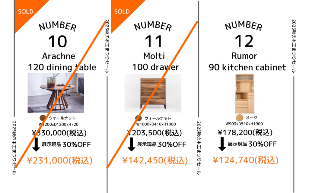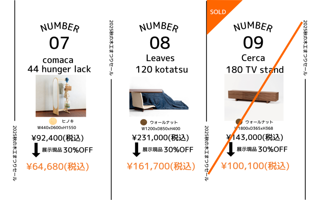 サイズ感・木目・色味を直接見て選べるのは、この機会だけです。