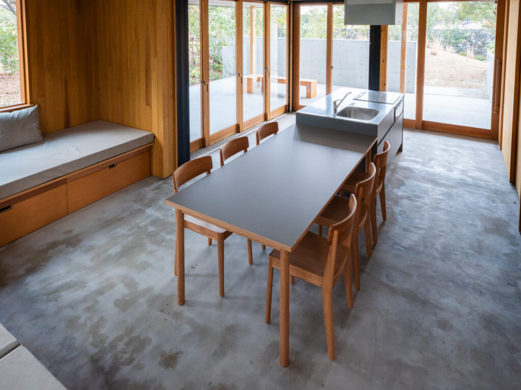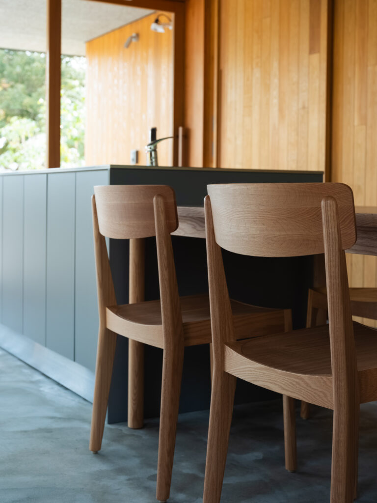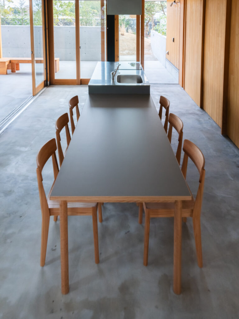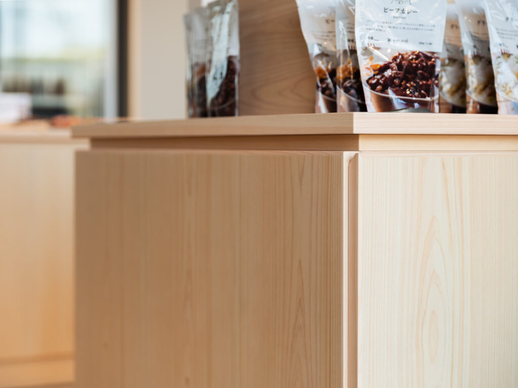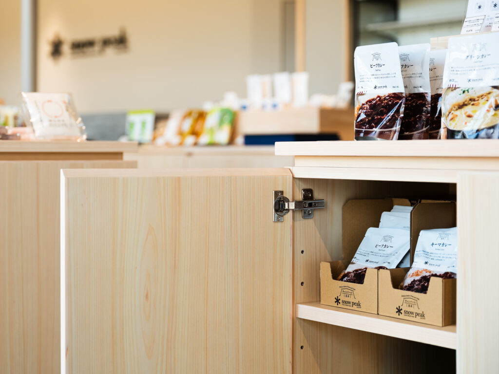 snow peak GROUNDS YOSHINOGARI 2026-04-16 SnowPeak GROUNDS YOSHINOGARI スノーピーク グラウンズ 吉野ケ里 2026年春、佐賀県・吉野ヶ里歴史公園内に誕生した体験型複合施設「スノーピーク グラウンズ吉野ヶ里」。歴史と豊かな自然が交差するこの特別な場所で、プライベートコテージへの家具納品、および併設店舗の特注什器の製作を担当させていただきました。スノーピークが提案する「野遊び」の精神と、吉野ヶ里の土地が持つ力強いエネルギー。その2つを繋ぎ、訪れる人々に心地よい時間を提供する空間づくりをお手伝いしています。 Cottage|非日常のくつろぎを深めるダイニング AT ダイニングテーブル ※特別仕様 レッドオーク材/ナチュラルオイル仕上げ 特別な滞在を約束する宿泊用コテージには、空間の主役として「AT ダイニングテーブル」を採用いただきました。 今回納品したテーブルは、宿泊施設という環境を考慮したこだわりの仕様です。天板には、耐久性とメンテナンス性に優れた「メラミン素材」を採用。気兼ねなく食事や団らんを楽しめる実用性を確保しました。一方で、手が触れる天板の縁(ふち)には「無垢材」をあしらうことで、木の豊かな温もりと上質な手触りをプラスしています。 コテージの建築美に静かに寄り添いつつ、機能性と美しさを高い次元で両立させたデザインです。 合わせるチェアには、美しい曲線が背中を包み込む「カーヴ チェア(ARIAKE)」をセレクト。長時間の語らいでも疲れにくい機能性と端正なフォルムが、テーブルの存在感をさらに引き立てます。 Store|ブランドの世界観を体現する特注什器 アウトドアギアやアパレルが並ぶ併設店舗では、商品の魅力を最大限に引き出すための特注什器を製作いたしました。スノーピークの洗練されたプロダクトと、吉野ヶ里の自然環境。その双方に調和するよう、素材の選定からディテールに至るまで細やかな調整を重ねました。単に物を陳列するだけでなく、ブランドが持つ「自然との繋がり」や「クラフトマンシップ」を感じていただけるような、機能的かつ美しい造形を目指しています。 【 納品アイテム・製作内容 】 コテージ納品:AT ダイニングテーブル(autumnme)、カーヴ チェア(ARIAKE) 店舗製作:特注陳列什器一式(SAGA COLLECTIVE販売スペース) 【 施設情報 】 スノーピーク グラウンズ吉野ヶ里(Snow Peak Grounds Yoshinogari)佐賀県神埼市神崎町鶴612番地1 関連記事 九州佐賀国際空港様(佐賀市川副町) ホテルニューオータニ佐賀様(佐賀市与賀町) さがレトロ館様(佐賀市城内) arita huis様(西松浦郡有田町)