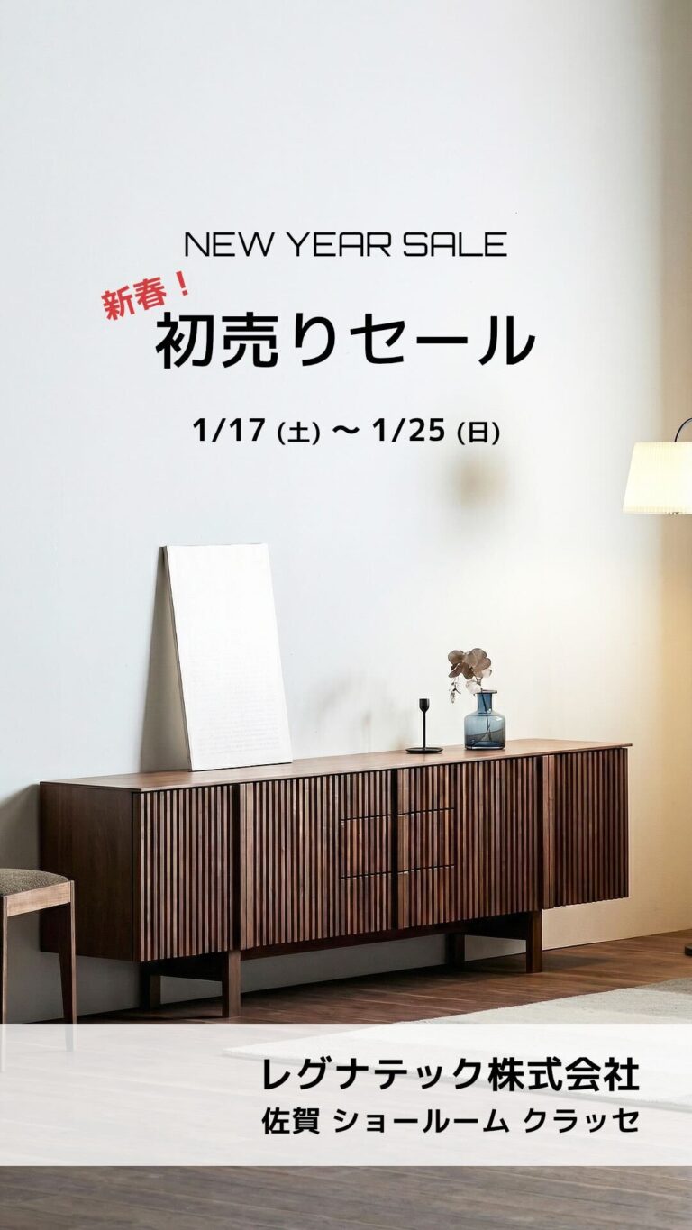 新しい一年のはじまりに。暮らしを整える家具との出会いを。 レグナテックショールームでは、1月17日(土)〜1月25日(日)の期間で、「初売りセール」を開催いたし