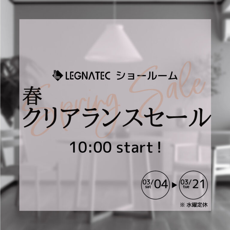 【第15回春の木工まつり】 私たち レグナテックは、ショールームにて 『 春の木工まつりSALE 』を開催いたします。 〈 SALE 〉 10%OFF 家具新規
